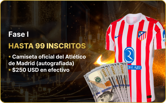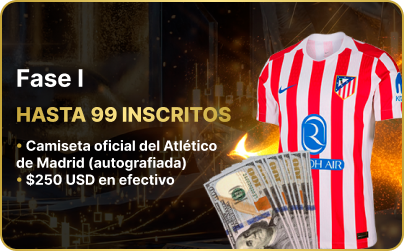 El premio depende de los inscritos, llegando hasta: $5,000 USD, vivir la experiencia de un partido del atlético de madrid en palco VIP (vuelo + hotel), camiseta autografiada y el título “Orlux Professional Trader 2026”.