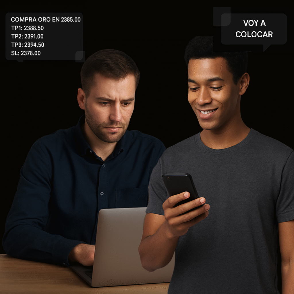 ¿Qué estás buscando? Selecciona la opción que mejor se adapte a ti y te guiamos paso a paso. Aprender Trading Accede a clases estructuradas, PDF, videos y mentoría personalizada para aprender desde cero y comenzar a operar con confianza. Trading automático Conecta tu cuenta y copia a traders profesionales. Si ellos ganan, tú ganas. Configúralo una vez y todo se hará en automático. Copiar y pegar operaciones Recibe nuestras operaciones y colócalas por tu cuenta. Aprende a interpretar el mercado mientras practicas en tiempo real. Monetizar mi Comunidad Si ya tienes una audiencia, canal o comunidad, accede a nuestro sistema y gana comisiones con tu propio enlace personalizado al bróker.